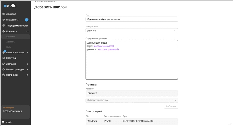 Компания Xello, разработчик российской платформы киберобмана для защиты от целевых атак, сообщила о выходе новой версии своего флагманского продукта — Xello Deception 5.8. Главное нововведение — шаблонизация приманок, которая открывает расширенные возможности для настройки и гибкой работы с ними. В версии 5.8 появилась возможность создавать собственные шаблоны приманок и настраивать их содержимое: редактировать текст файлов, корректировать скрипты и конфигурации, задавать пути распространения и имена файлов. Это делает работу с приманками значительно более адаптивной и позволяет легко подстраивать их под любые сценарии, повышая эффективность обнаружения угроз. Также в новой версии расширены возможности браузерных и реестровых приманок, реализованы новые типы приманок — письма и файлы офисных приложений, ярлыки файлов, конфигурации менеджеров паролей, VPN-клиентов и менеджеров подключений.