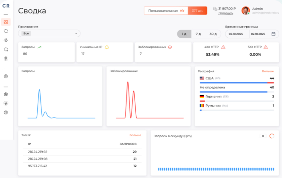 Комплексное решение для защиты веб‑приложений и API, включающее WAF, антибот и многоуровневую защиту от DoS/DDoS на уровнях L3/L4/L7. Решение предназначено для снижения рисков компрометации, простоев и финансовых потерь за счёт фильтрации трафика, блокирования атак и ограничения злоупотреблений как на сетевом, так и на прикладном уровне. Включено в реестр Минцифры